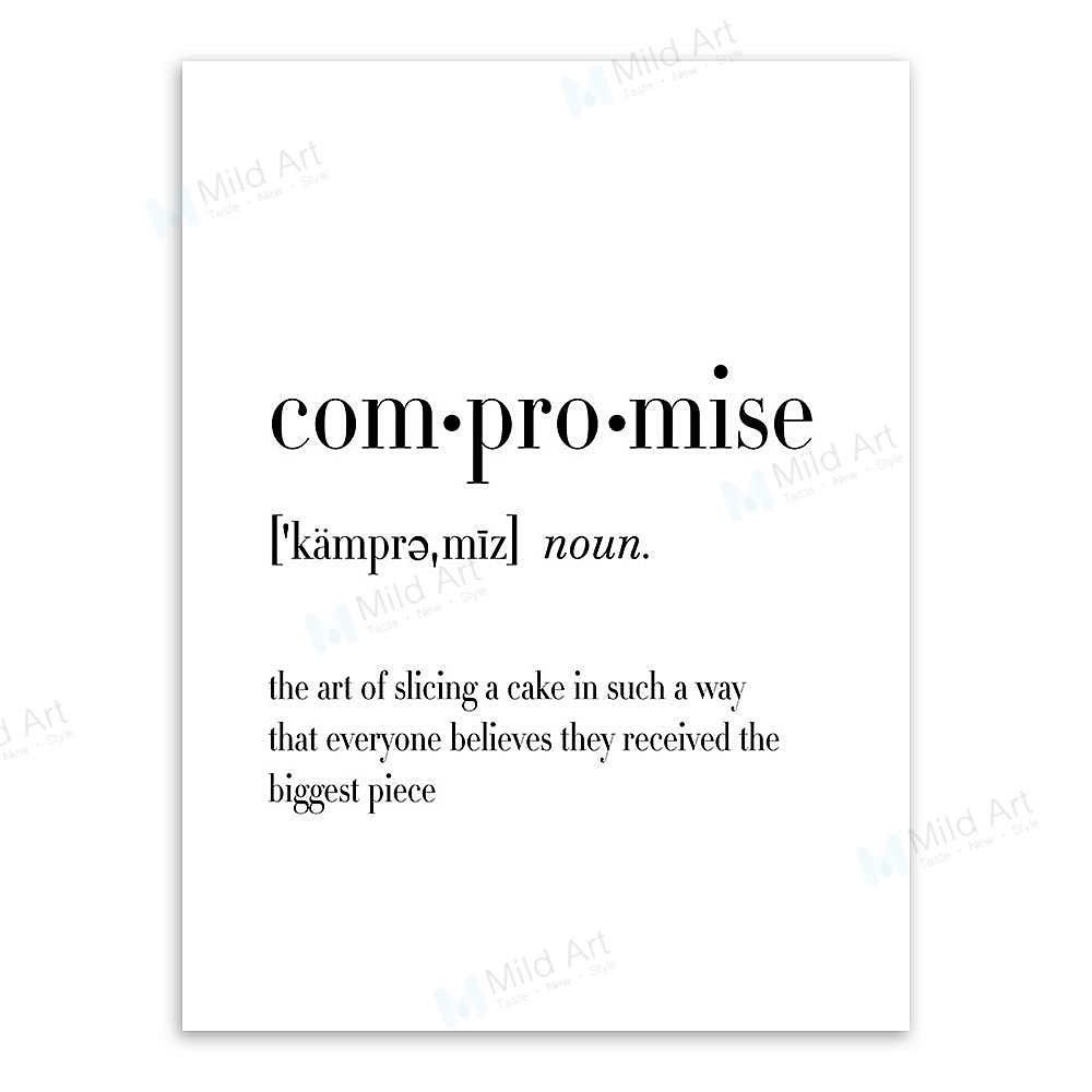 Necessity of compromise definition. The expression born in the US calls on imagery of a father coercing by way of a firearma young man to marry his enceinte daugther 2. Worth of the individual equality of all persons majority rule-minority rights individual freedom and necessity of compromise. An agreement in an argument in which the people involved reduce their demands or change their opinion in order to agree.