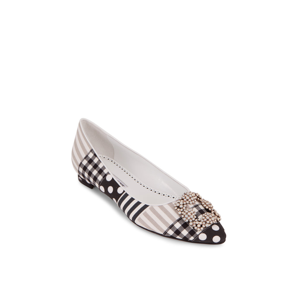 Shop Manolo Blahnik Hangisi patchwork ballerinas. Your order will be. Shop Manolo Blahnik Hangisi patchwork ballerinas. Ver todos os tamanhos. Cottonleather upper Point toe Slip-on style Leather lining Leather sole Made in Italy. Manolo Blahnik leather Hangisiflat patchwork flat with mixed pattern print a pointed toe gem detail on uppers and a slip on style. Manolo Blahnik pumps in patchwork of polka-dot gingham and striped fabric.