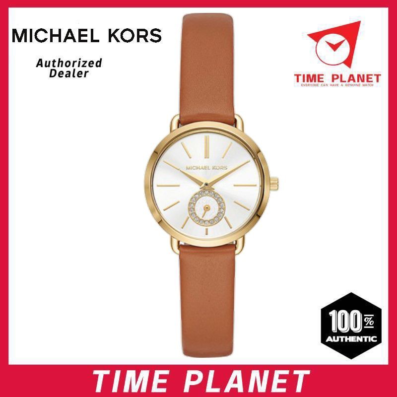 Get a Sale Alert. Michael Kors Petite Portia MK2734 analog womens casual wristwatch with quartz movement 28mm stainless steel case white dial mineral glass and brown calf leather strap. Michael Kors Micheal Alane Leather Strap Watch 18mm x 28mm.