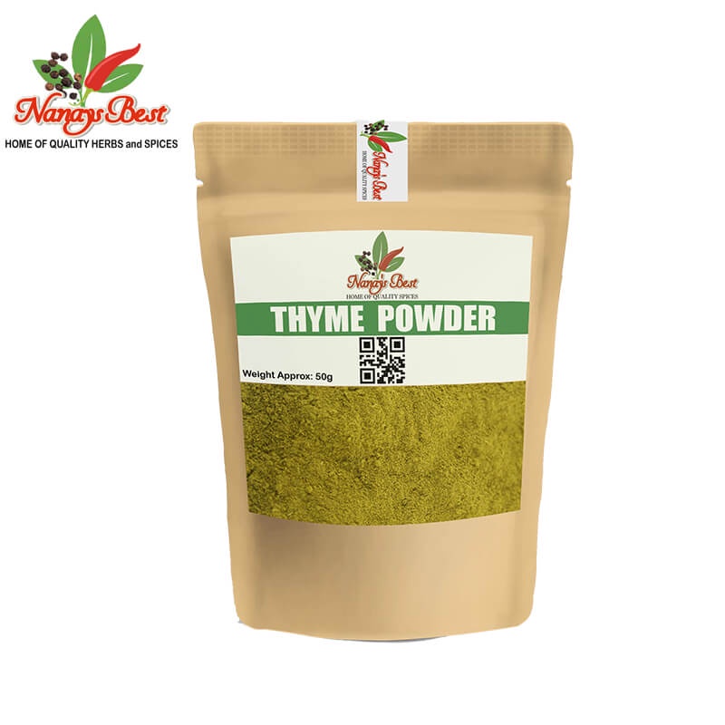 A perfect companion for rosemary especially with veggies. The powdered herb can be used in cooking just like the fresh or dried leaf. The thyme powder I received is brownish greendefinitely more brown than greenand does not even remotely resemble the photo of the product.
